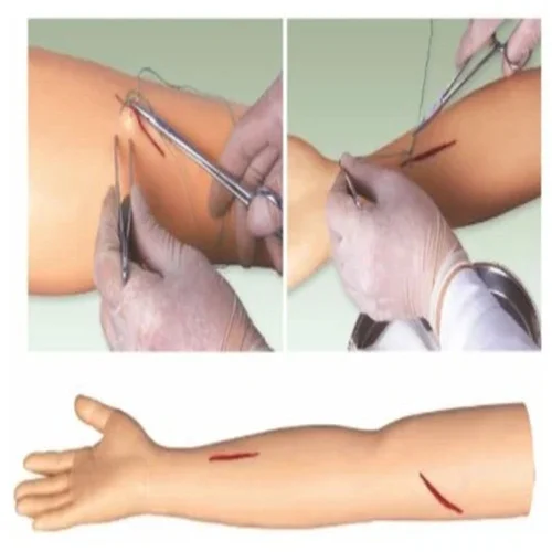 Advanced Surgical Suture Arms are realistic silicone models used by medical students, nurses, and surgeons for hands-on training in various suturing techniques (simple interrupted, mattress, subcutaneous) and wound closure, offering durable, reusable practice for enhancing skills, confidence, and precision in a safe, controlled environment before clinical application, often featuring multiple wounds and layered tissues.