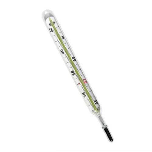 The body of the thermometer is crafted from durable, clear glass which allows easy reading of the temperature scale while also offering resistance to common chemical exposure and physical impact. The mercury-filled capillary within the thermometer rises in response to body heat when placed orally under the tongue, enabling fast and accurate measurement. The high-quality mercury used provides reliable readings with a fine expansion range, making the thermometer sensitive enough to detect even slight fluctuations in body temperature. A constriction in the capillary tube ensures the mercury stays in place long enough for the user to take a reading, even after removal from the mouth.