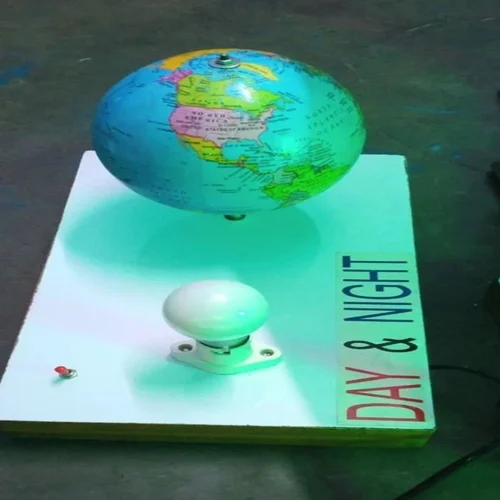 A Day and Night Apparatus is a science model used primarily in education to visually demonstrate how Earth’s rotation on its axis causes day and night, showing how different parts face the sun (day) or are in shadow (night) over 24 hours, helping explain time zones, sunrise/sunset patterns, and basic astronomy. It typically features a globe, a light source (Sun), and sometimes an tilted axis to illustrate seasonal effects on day length.