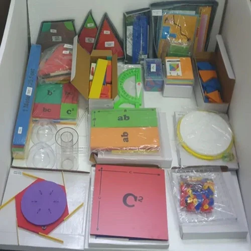 A Senior Mathematics Kit helps students grasp abstract concepts in higher math (geometry, algebra, calculus, mensuration) through hands-on, visual activities, allowing teachers to demonstrate principles like Pythagoras, conic sections, and volume visually using tools like geometric solids, fraction disks, and algebraic cubes, fostering critical thinking and practical application for better understanding beyond textbooks.